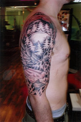 Half shoulder half chest free tattoo design.